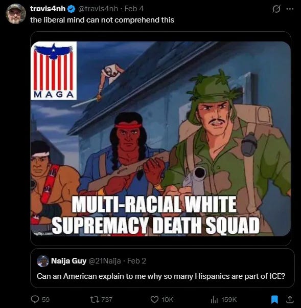 The issues change constantly, but the target is always President Trump. The second Trump administration has made remarkable progress in dismantling the federal bureaucracy and freeing us from the mandates of anti-scientific, anti-human globalist climate-change grifters. The Department of Defense is gone, and the Department of War has demonstrated the remarkable ability to launch punitive raids that achieve their announced objectives in hours, not years. The tactical competence shown in the capture of Maduro was stunning.