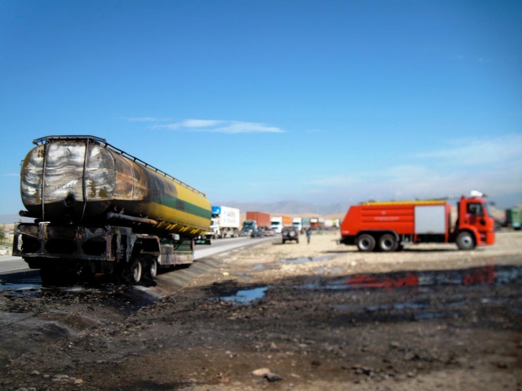 What was working was the Taliban’s newest fuel tanker tactic: Limpet mines. They are now making small, powerful mines with military-grade plastic explosives they salvaged from Russian PTM mines or Chinese type 66 hand grenades. They then use electric or non-electric blasting caps, a time fuse, and powerful magnets to build the mine. The magnets they get from the American military, which auctions hundreds of used desktop computers a month at both Bagram and Kandahar Air Fields.